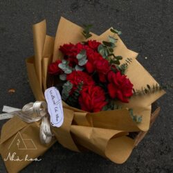 MÔ TẢ: hoa hồng đỏ mix giấy kraft màu be