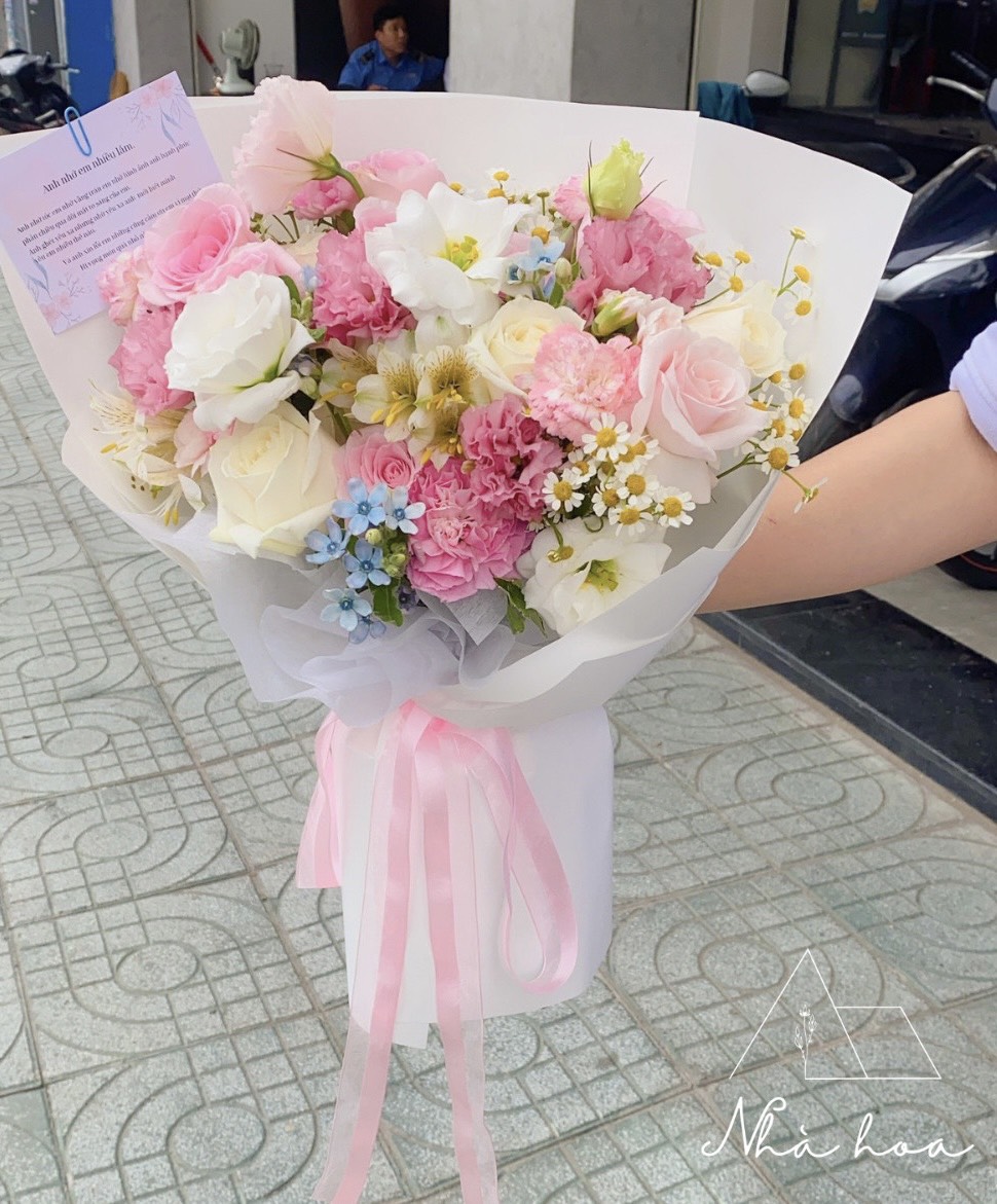 Một số sản phẩm kết hợp nhiều loại hoa có thể giống từ 80%-90% vì phụ thuộc theo mùa hoa hoặc loại hoa về trong ngày. Một số hoa tươi, hoa lá và phụ kiện trên mẫu có thể thay đổi tuỳ thuộc vào tài nguyên đang có tại shop (Nếu có bất cứ thay đổi nào, Nhà Hoa sẽ thông báo đến Quý Khách mua hàng).