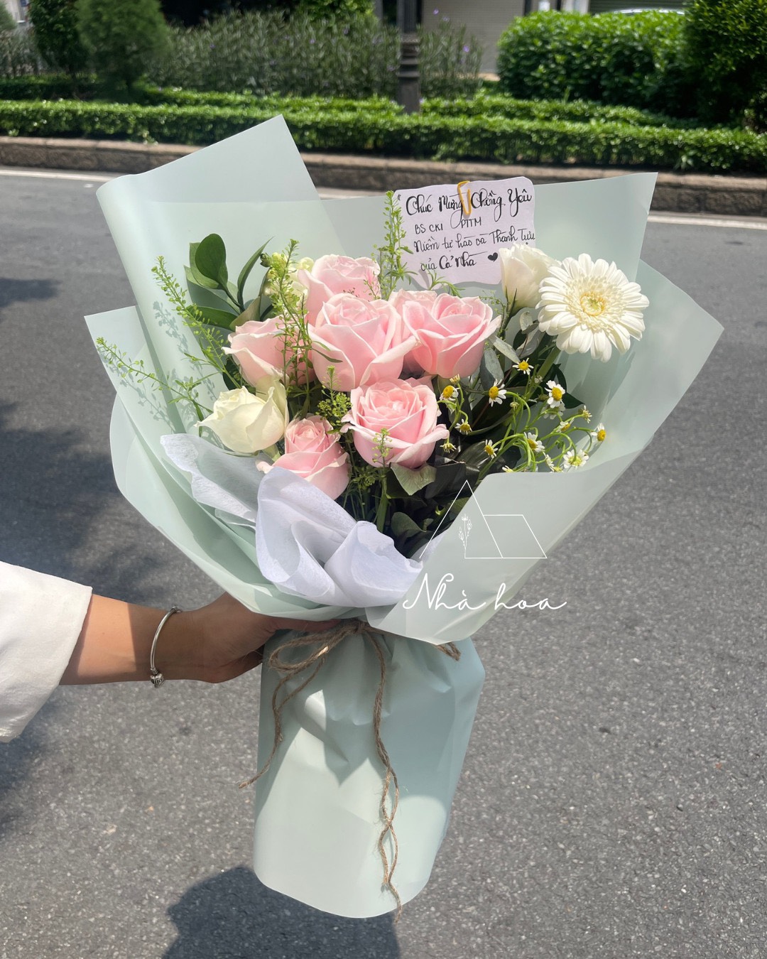 Một số sản phẩm kết hợp nhiều loại hoa có thể giống từ 80%-90% vì phụ thuộc theo mùa hoa hoặc loại hoa về trong ngày. Một số hoa tươi, hoa lá và phụ kiện trên mẫu có thể thay đổi tuỳ thuộc vào tài nguyên đang có tại shop (Nếu có bất cứ thay đổi nào, Nhà Hoa sẽ thông báo đến Quý Khách mua hàng).