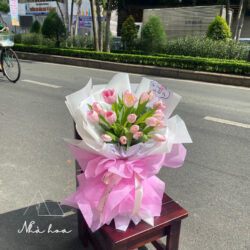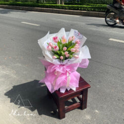 MÔ TẢ: 10 bông tuylip hồng kết hợp giấy gói 2 tầng trắng-hồng cách điệu