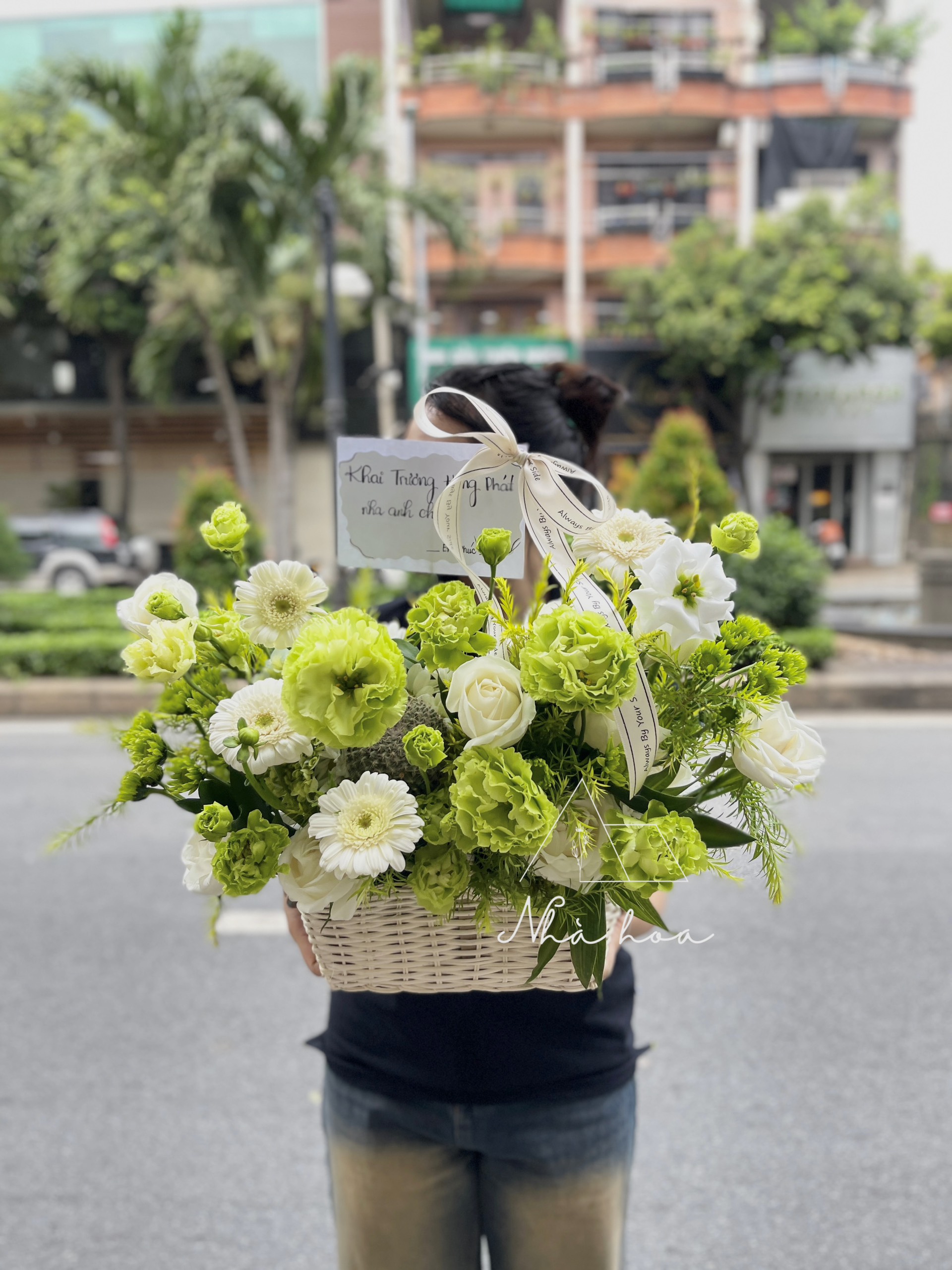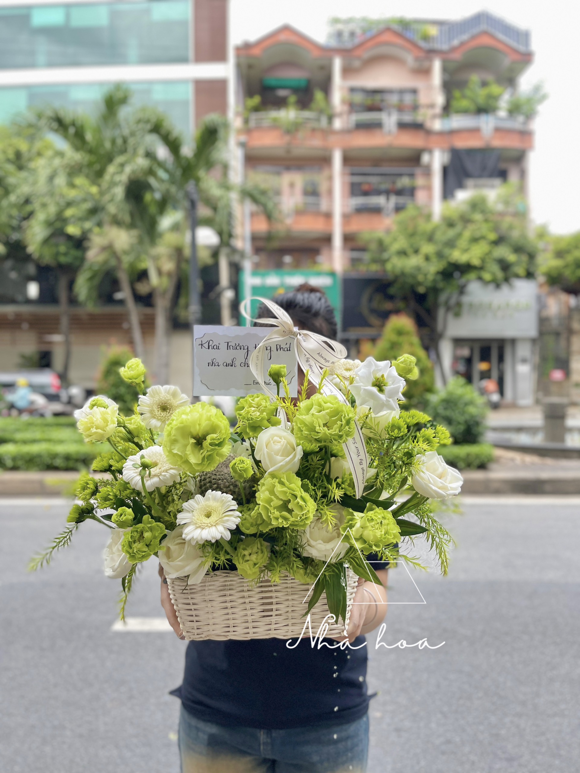 GIỎ HOA TONE XANH LÁ TẶNG NAM