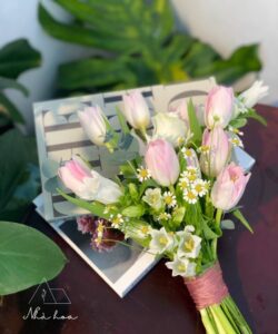 Một số sản phẩm kết hợp nhiều loại hoa có thể giống từ 80%-90% vì phụ thuộc theo mùa hoa hoặc loại hoa về trong ngày. Một số hoa tươi, hoa lá và phụ kiện trên mẫu có thể thay đổi tuỳ thuộc vào tài nguyên đang có tại shop (Nếu có bất cứ thay đổi nào, Nhà Hoa sẽ thông báo đến Quý Khách mua hàng).