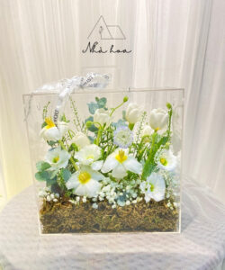 Một số sản phẩm kết hợp nhiều loại hoa có thể giống từ 80%-90% vì phụ thuộc theo mùa hoa hoặc loại hoa về trong ngày. Một số hoa tươi, hoa lá và phụ kiện trên mẫu có thể thay đổi tuỳ thuộc vào tài nguyên đang có tại shop (Nếu có bất cứ thay đổi nào, Nhà Hoa sẽ thông báo đến Quý Khách mua hàng).